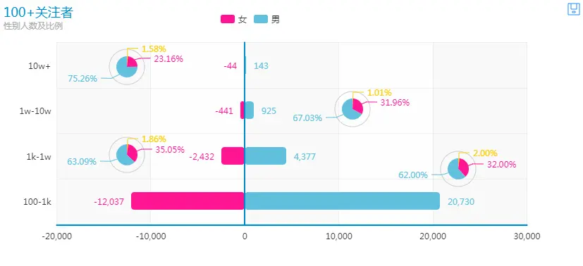 全部用户平均粉丝数为79人。全靠下面的大V带飞。