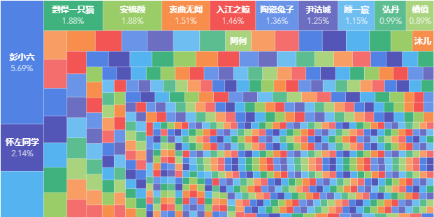 所有799名作者都有一席之地,按照收录文章数直观的贡献情况如下,最左边和最上边即为排名前十几的作者情况: