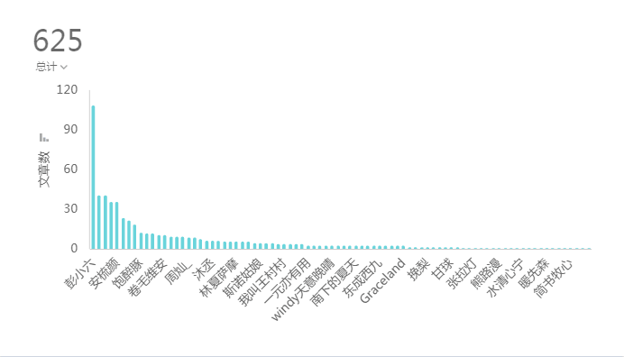 接着看看发布时间情况,11点钟文章最多,觉得蛮奇怪的,作为一只喜欢在晚上发布文章的小透明,原本觉得晚上才是创作的大好时光啊,11点钟已经属于饭点,难道是上午潜心创作,一天之计在于晨,将当天的写作任务早早的完成,一身轻松?再是24小时都有人发布文章并成为热点,可见鸟儿大了,什么林子都有啊。逃......