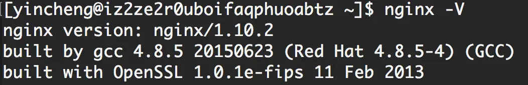 要求nginx的最低版本是1.10.0,openssl的最低版本是1.0.2,http/2在实现上基本上只支持https。笔者的系统是centos 7,用yum安装的nginx是1.10.2,这个版本是可以的,但是系统的openssl是1.0.1,把系统的openssl update一下,变成1.0.2,但还是不可以。发现是因为nginx在编译的时候指定的openssl是1.0.1的,所以即使升级了系统的openssl也是没有用的,如下图所示: