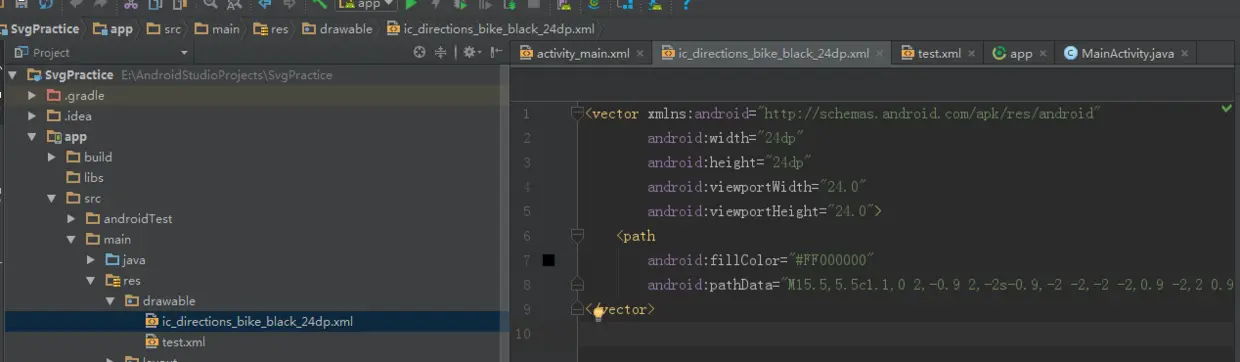 Vector Drawable是Google从Android 5.0开始引入的一个新的Drawable子类,能够加载矢量图(低版本中需要做兼容,如何兼容低版本下文提及),android中vector Drawable通过配置xml再设置到要使用的控件上,不必进行多屏幕分别率适配,只需要创建一份,不需要通过分辨率来设置不同的图片,可以大幅减少图像的体积,vector Drawable有些类似svg文件,但是Android中的Vector并不是支持全部的SVG语法