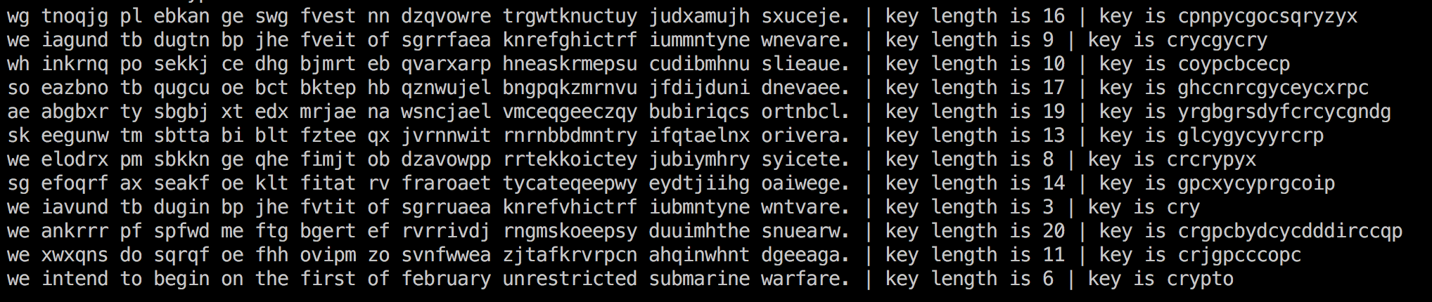 现在万事具备了,直接遍历备选的 key_length,然后看看解密之后的效果吧。