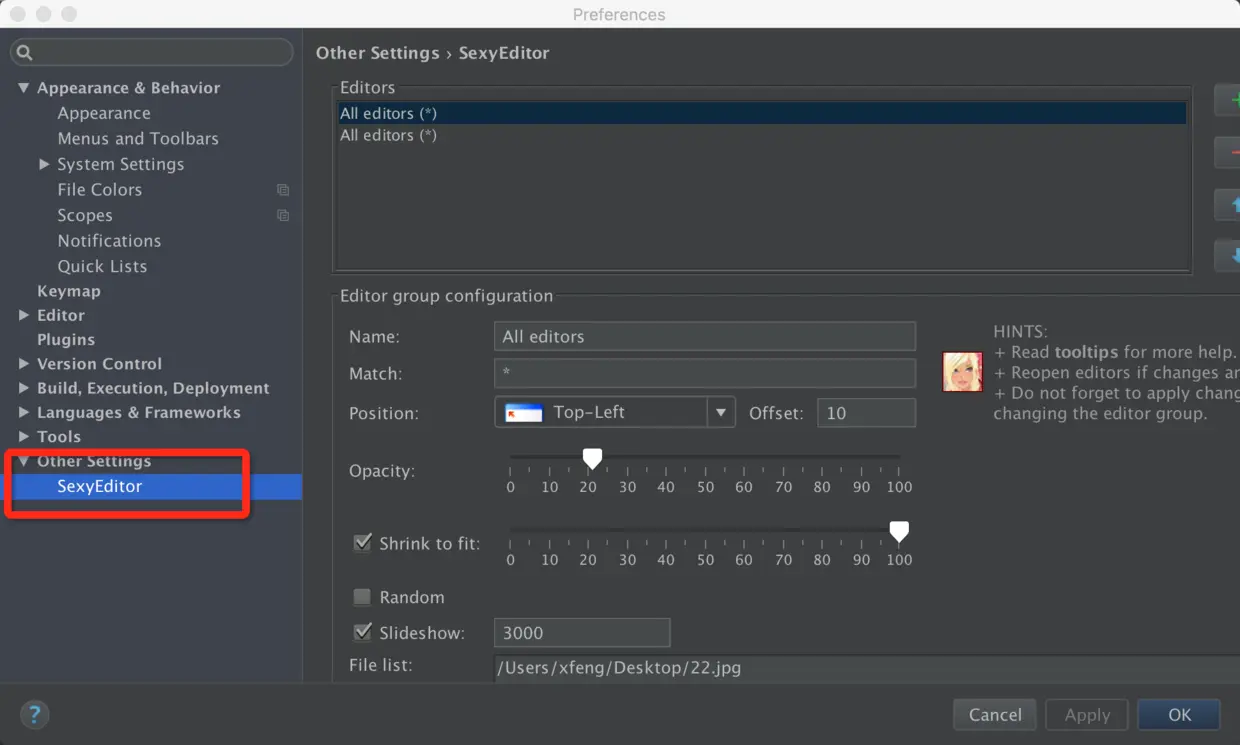 Sexy Editor(代码编辑区设置背景图)