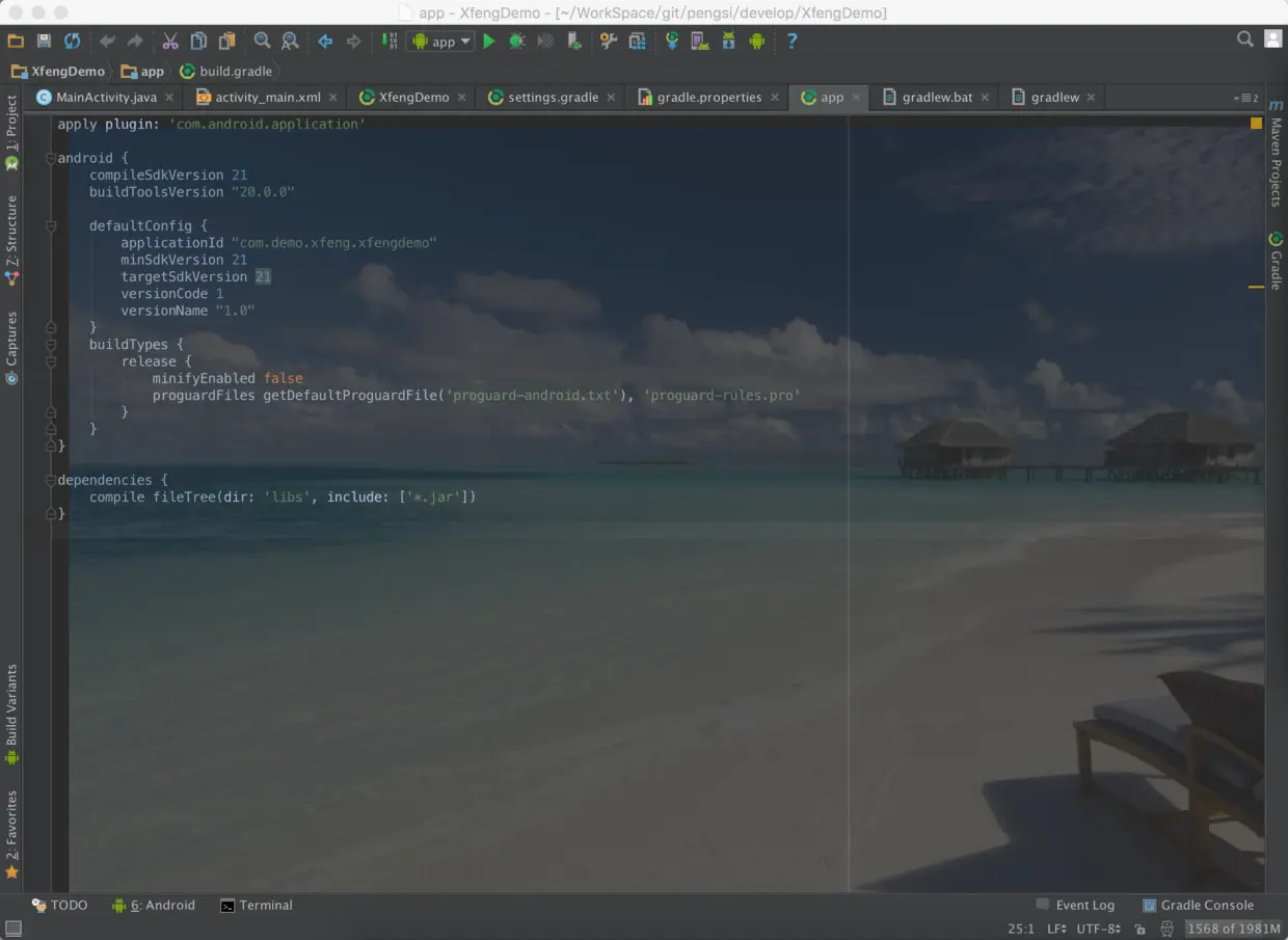 在这里先给大家一张我的Android studio的外观截图: