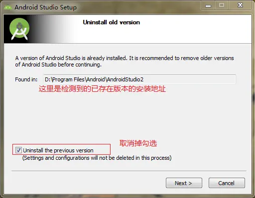 注意点:在安装第二个版本时,在安装流程选项里的“uninstall the privious version”的选项要取消勾选,如下图(取消勾选代表不覆盖原有安装版本)。
