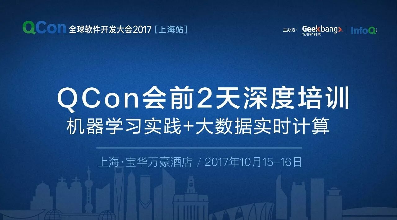 大家都知道,机器学习技术不仅包含高深的理论算法模型以及对数据的合理利用,同时也离不开全面的工程技术支持。因此,QCon 2017 上海站特设会前两天的深度培训——综合介绍业界先进的机器学习算法模型及应用实践,以及飞速发展的大数据实时计算技术。我们邀请的国内一线互联网技术专家们,也将通过各自在不同领域的实践分享,向大家展示如何利用【机器学习实践】和【大数据实时计算】技术的融合来引领业务发展的,并引领大家走上成为机器学习工程师之路。