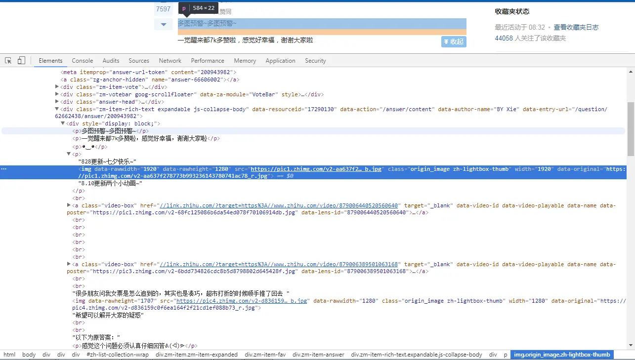 图中的img标签就是我们的爬取目标,我们可以明确的看到 data-original 元素的内容与 href 元素的内容都是图片的地址。经过验证, href 元素的内容可能会是缩略图地址,所以我们放弃 href 选择 data-original。