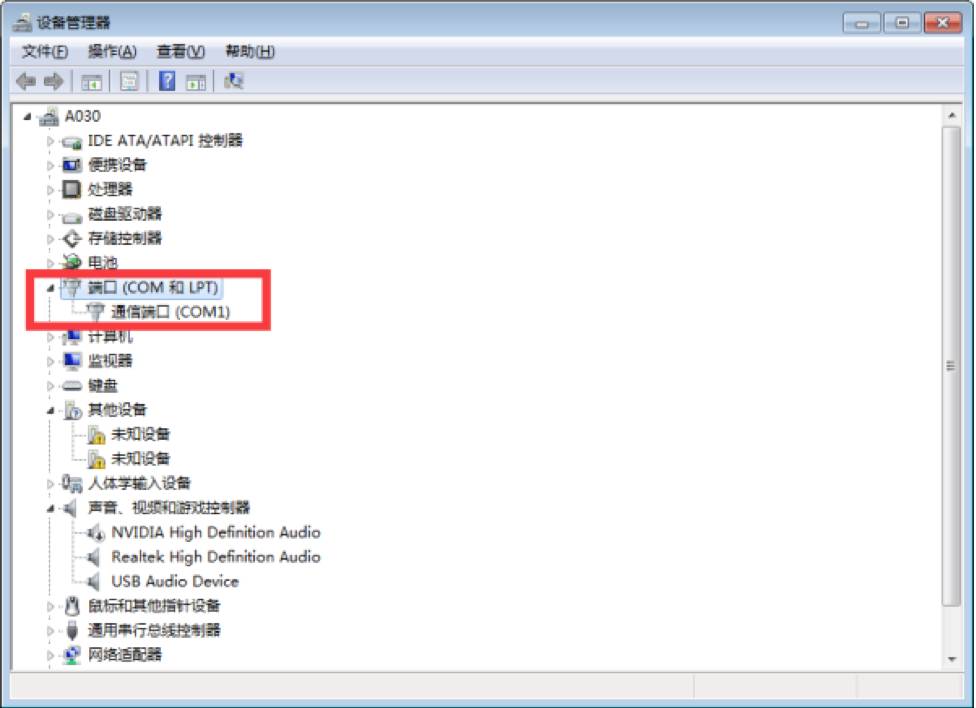 如果你不知道你的是什么板子和端口,可以在设备管理查看