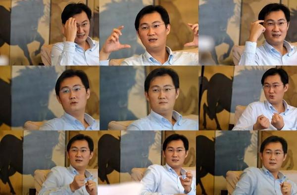 在这次采访中,影师连拍了一组照片,捕捉到了马化腾丰富的肢体语言,其实远不限于现存的表情包,足足能拼成一个九宫格系列。