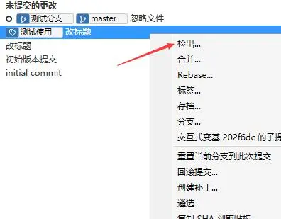 检出分支意思是将当前项目回到选中的版本,这样我们可以很轻松回到任意一个版本,来编译项目,或者检查当时项目的问题。