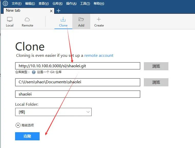 git remote add orgin http://10.10.100.6:3000/sl/shaolei.gitwindows下从url克隆
