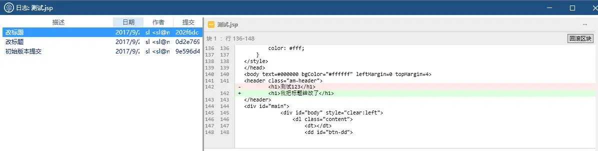 有些时候,我们提交的代码有问题,需要回滚回去。