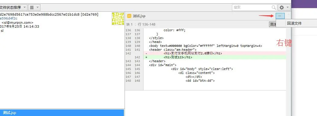 有些时候,我们也需要查看文件的历史版本,这里可以选中节点后,选择那个变更文件,右键 打开历史版本