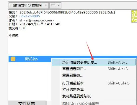 我们时常需要查看某个文件变动的历史,这里我们可以右键查看文件的 变更历史