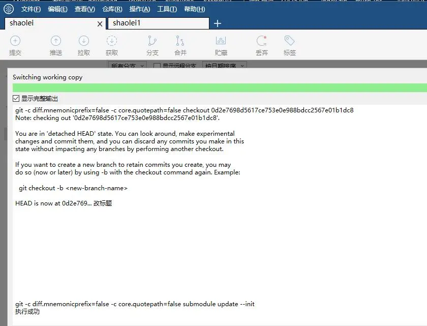$ git checkout 3e1e7fc需要切换到不通分支时,直接双击分支。