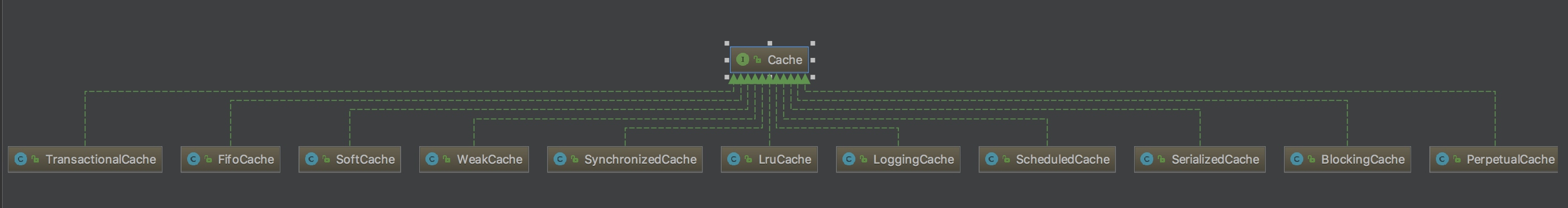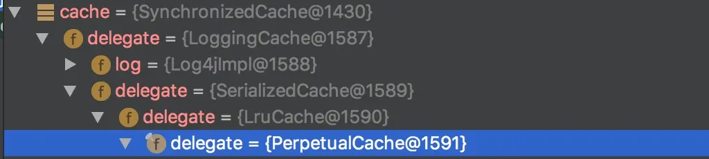 SynchronizedCache -> LoggingCache -> SerializedCache -> LruCache -> PerpetualCache。