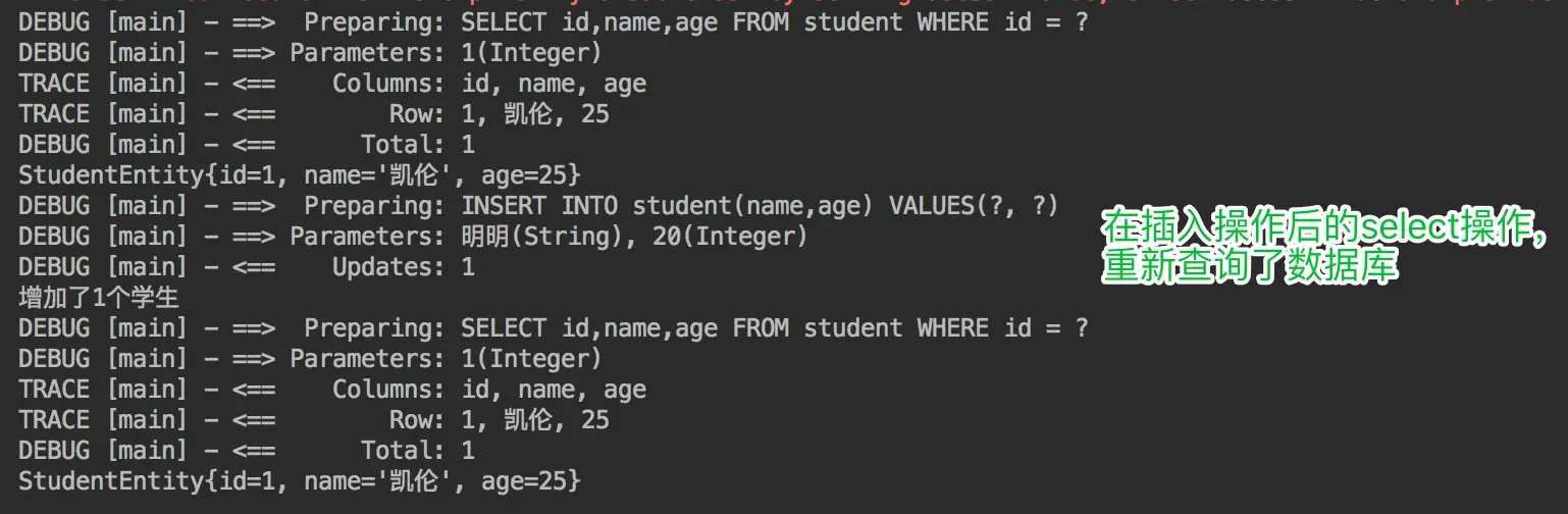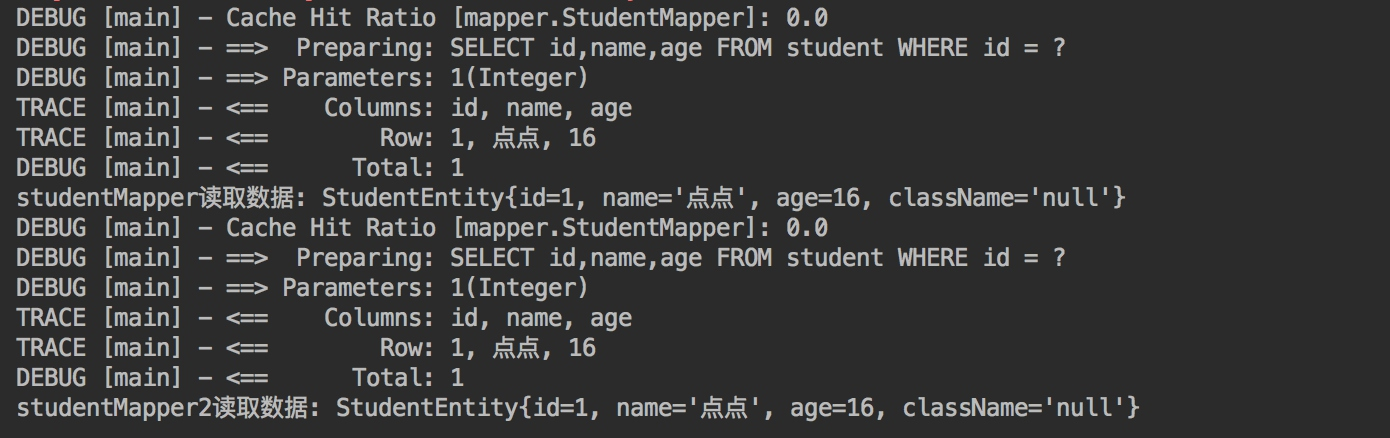 System.out.println("studentMapper2读取数据: " + studentMapper2.getStudentById(1));