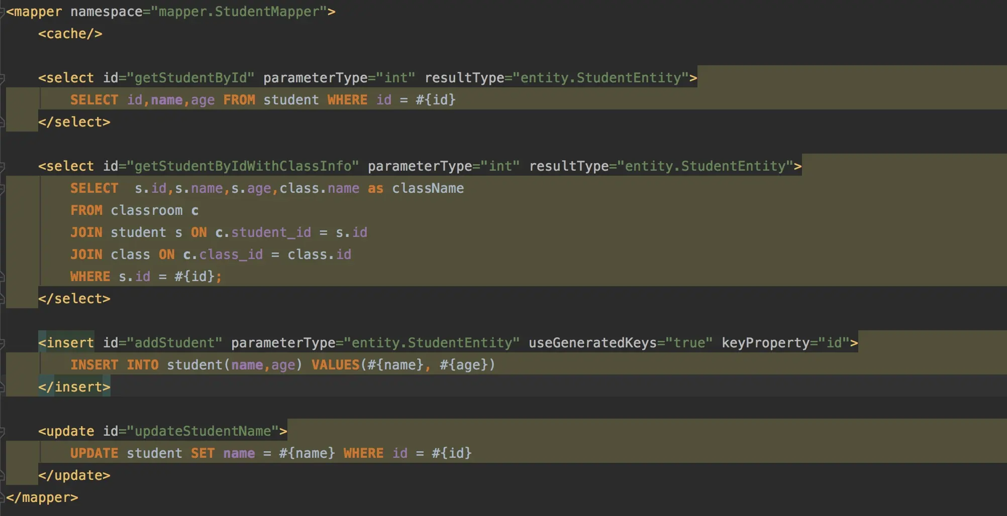 StudentMapper studentMapper = sqlSession.getMapper(StudentMapper.class);