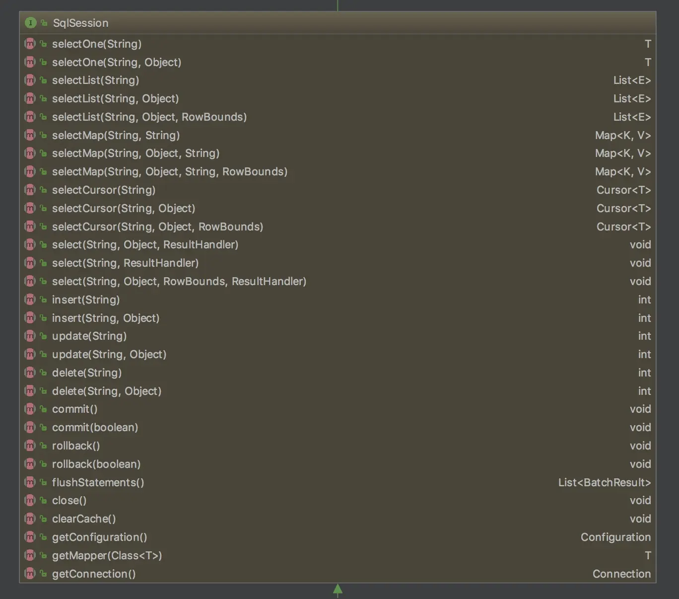 private Map<Object, Object> cache = new HashMap<Object, Object>();在阅读相关核心类代码后,从源代码层面对一级缓存工作中涉及到的相关代码,出于篇幅的考虑,对源码做适当删减,读者朋友可以结合本文,后续进行更详细的学习。
