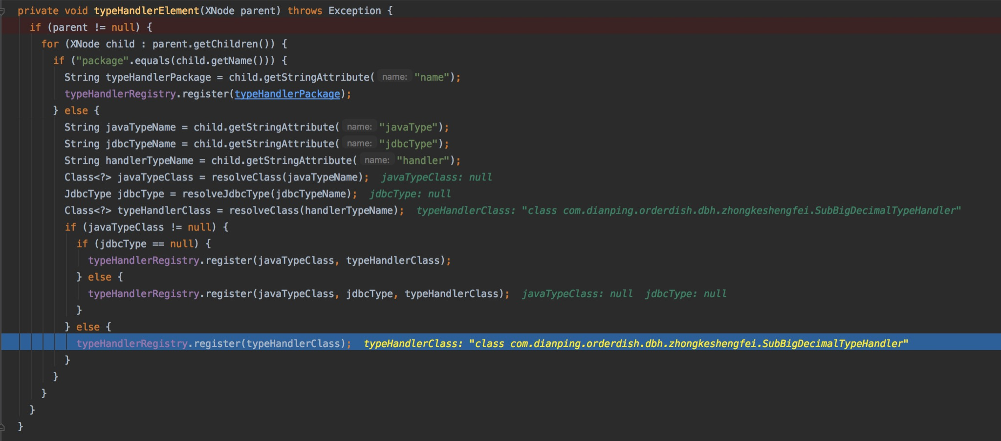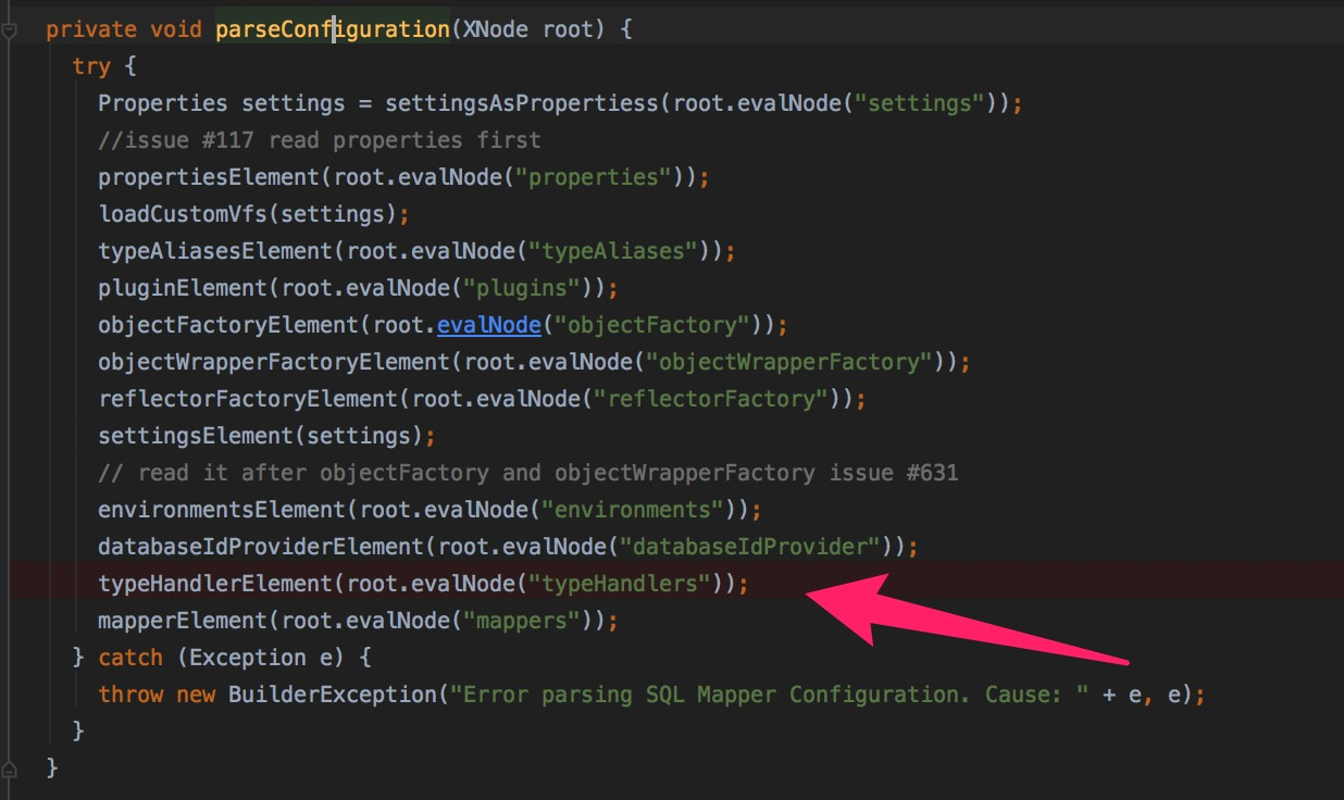 箭头表示处,就是解析typehandlers节点,我们看看他具体做了些什么。
