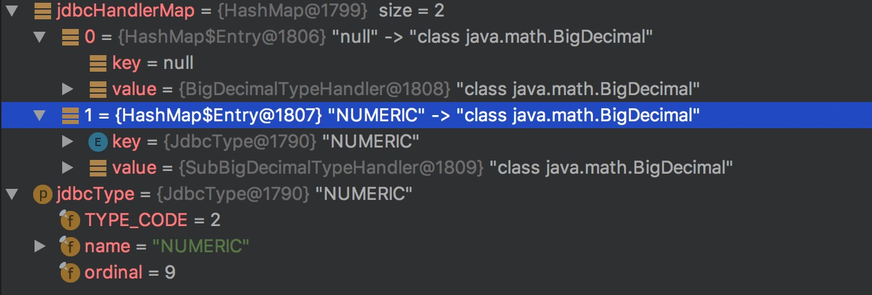 因为我们知道jdbc的类型是NUMERIC,而且之前注册的SubBigDecimalTypeHandler对应的JDBC类型是NUMERIC。