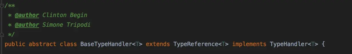 从Mybatis3.1.0开始,会自动解析这个类对应的Java类型,还记得之前我们继承的BigDecimalTypeHandler中我们的基类BaseTypeHandler继承了TypeReference么?