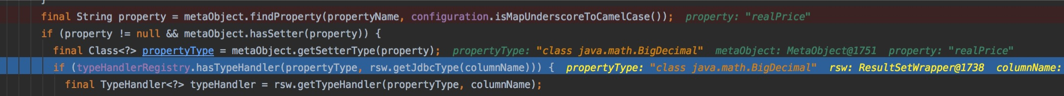在之前的createAutomaticMappings,找到列名后,会找出对应的字段,首先会判断是否有对应的TypeHandler。