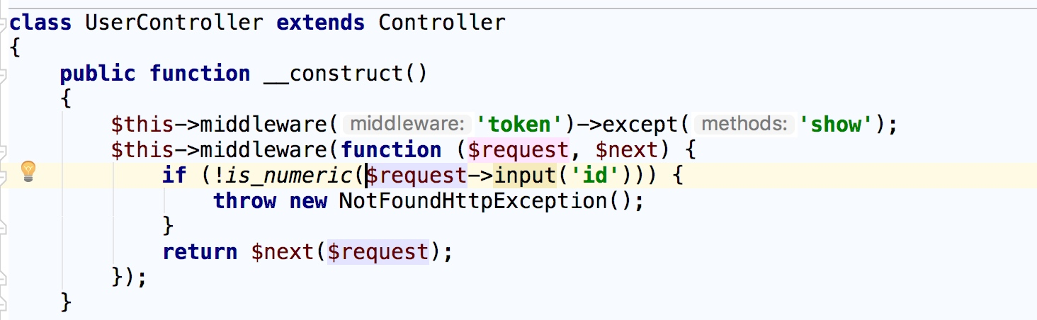 还是以 UserController 为例,我们为其定义一个匿名中间件: