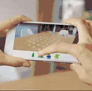 AR方面,主力军是Project Tango和ARCore,前者是利用高配置的软硬件结合方案,提供环境感知,位置跟踪等服务,应用于室内定位、三维建模、机器人等领域,应用于移动设备上的产品很有限;
