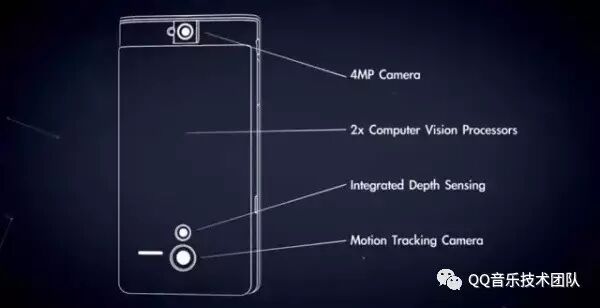 上文中ARCore的三个核心技术在Tango中都有涉及,而且ARCore SDK和so包里面的文件命名都出现了Tango的字眼,由此不难猜测出ARCore其实是在Tango的研发基础上进行的功能改造,Tango一定要达到特定的软硬件标准才能够实现,比如下图是一台Tango手机需要的部分组件