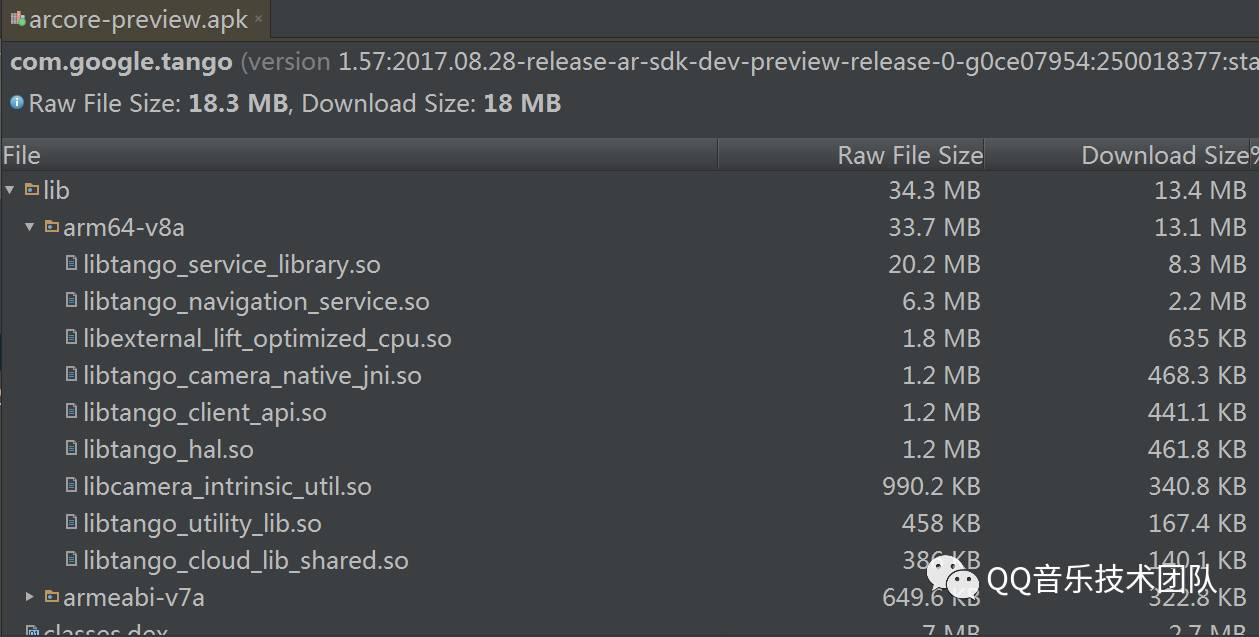同时利用Android Studio可以反编译查看arcore-preview.apk的结构
