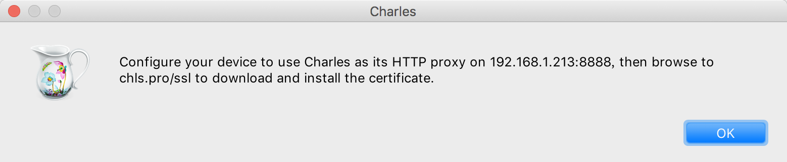 - 复制弹窗框中的 chls.pro/ssl 地址在手机设备中打开这个地址,会自动在手机上安装 信任证书