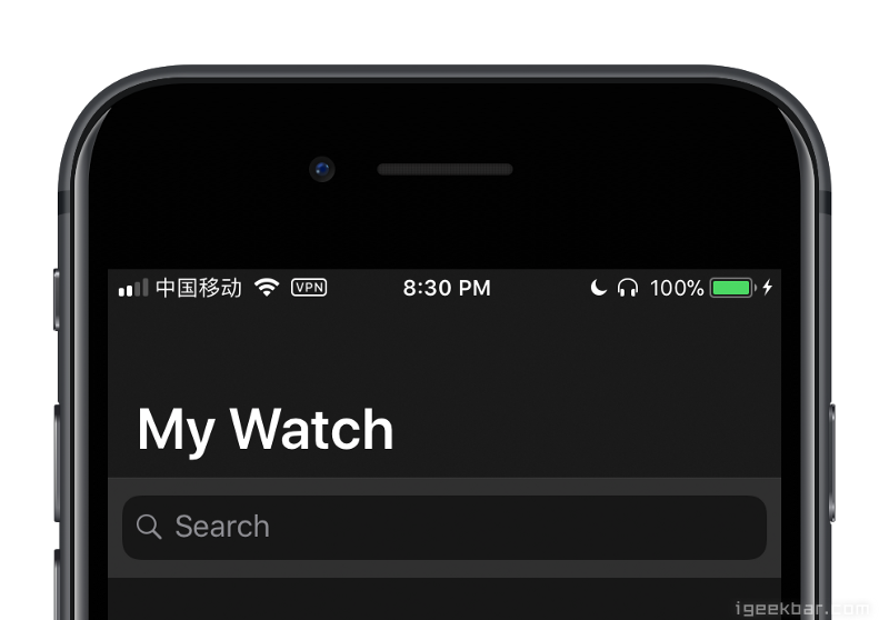 所以,iOS 11被建议让搜索条和导航条的背景颜色做一下匹配。目前为止Watch.app作为原生app还没有遵守上面的建议。还有,一旦被点击,Watch.app中的搜索条几乎都要“亲上”状态条了,这说明苹果的工程师们实在是有太多东西需要改进了。
