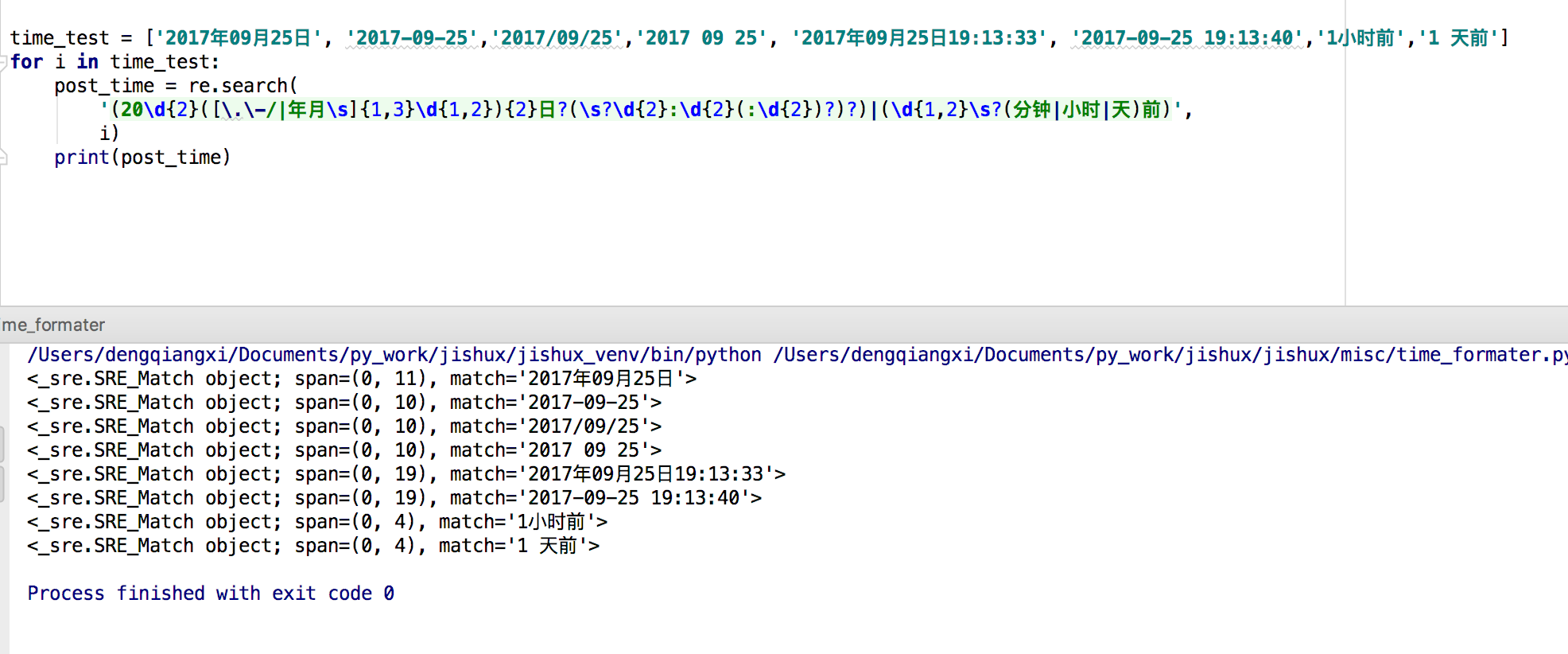 time_test = ['2017年09月25日', '2017-09-25','2017/09/25','2017 09 25', '2017年09月25日19:13:33', '2017-09-25 19:13:40','1小时前','1 天前']