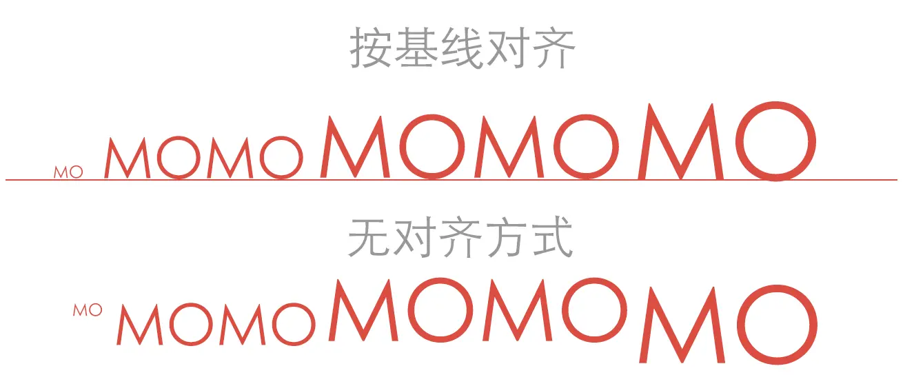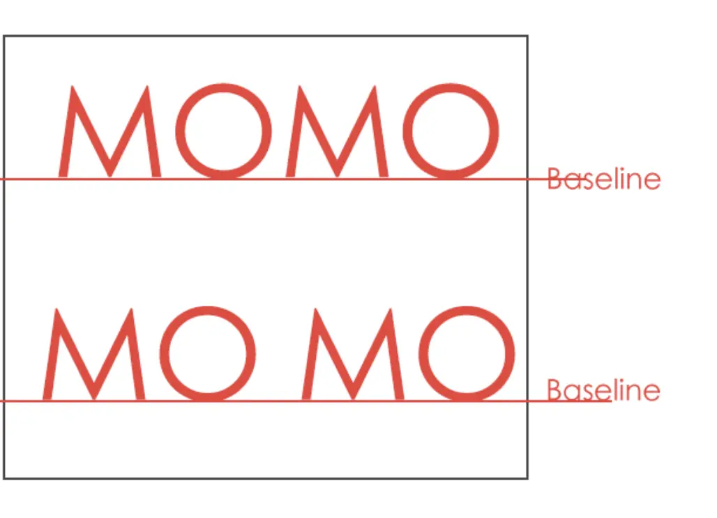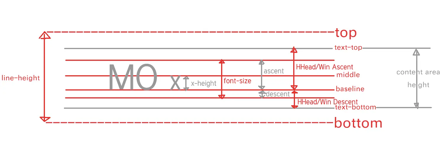 通过上面对字体的学习可以知道:inline的元素(如:span,label,i,等元素)的基线就是其中的元素的字体的基线。就是在第一节中的各种baseline.几个不同的inline元素放在同一行的时候,就是把几个的baseline对齐就可以了,就像上面的不同字号的“MO”按基线对齐后的排列是一样的。