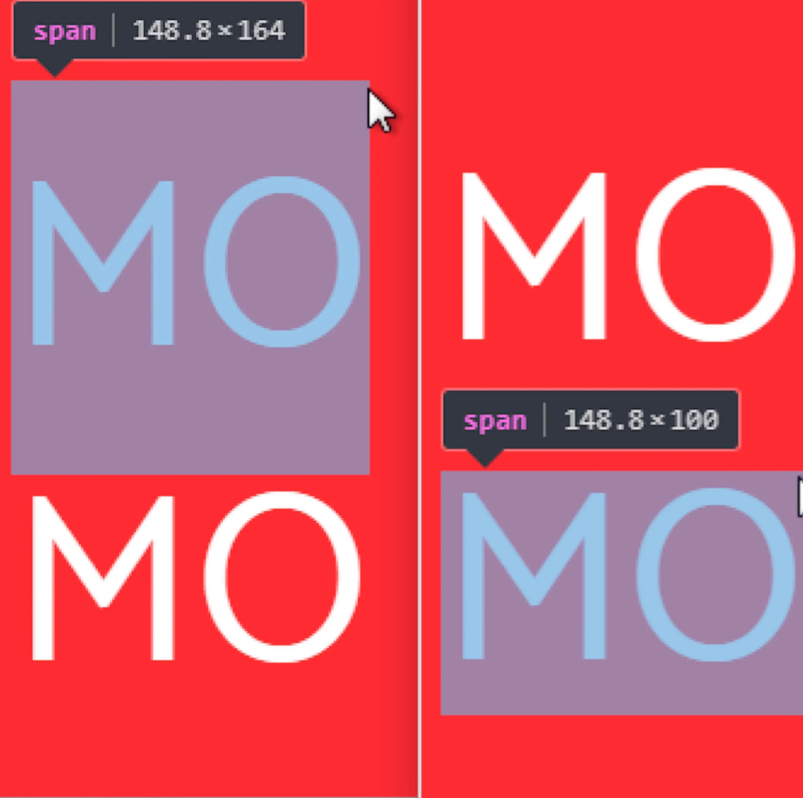 对比着参数图再看一下上面这张图是不是很快就明白了为什么设置了相同的font-size,却表现出不同的高度。高出的部分其实是: