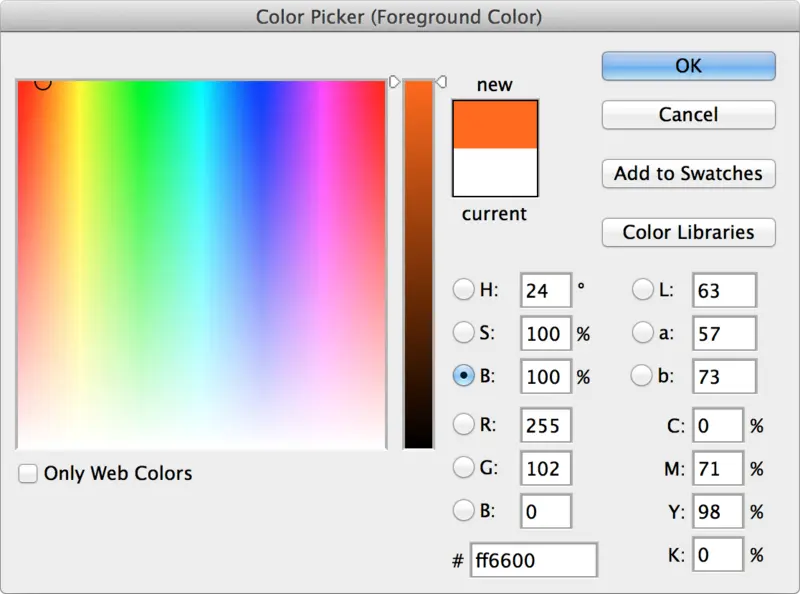 如果我们使用rgb()函数代替关键字颜色值orange,可以表示为rgb(255, 102, 0)