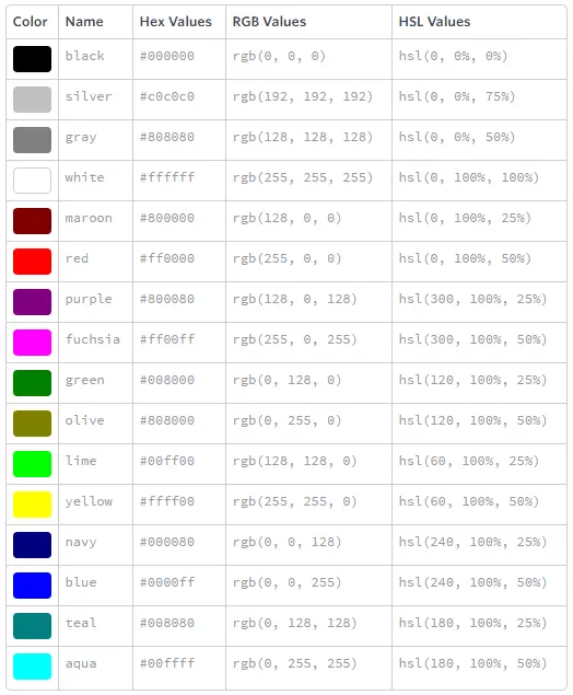 - 不同的CSS色值表示方式:关键字,十六进制,RGB和HSL