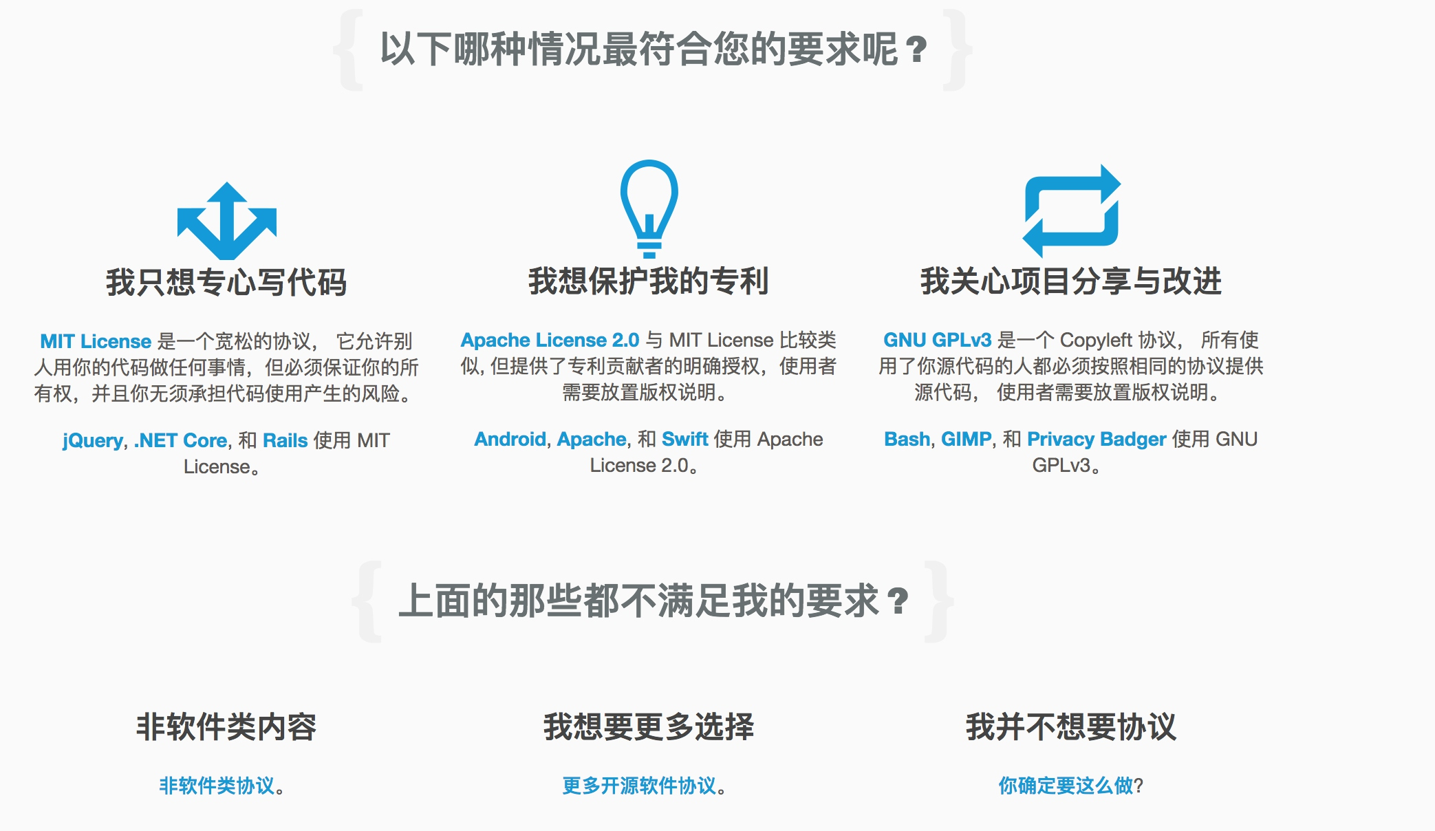 知乎网友gcssloop在这个的基础上对其做了汉化处理,具体网址见choosealicense.online/