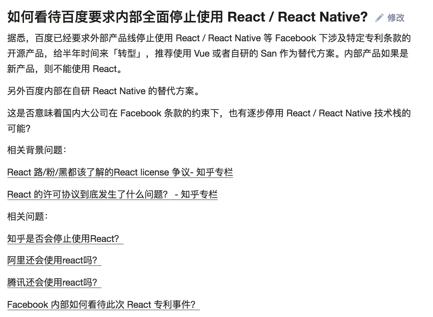 这是个人对这次Facebook React开源协议事件的一些资料收集以及个人看法,希望对大家有所帮助。