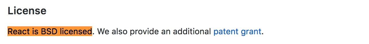 React使用的是BSD协议,另外附加了专利许可证。而引起讨论的重点则出在PATENTS 专利许可上。