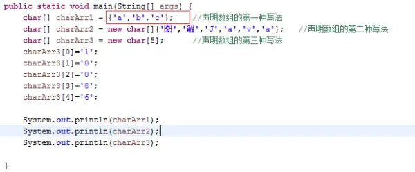 三种数组的声明方式编译后,最后创建的方式都是一样的,都给我们加了new关键字,顺手还把charArr3的声明与赋值一体化了,编译器你管得也太多了吧。评论区里有人说反编译后和我反编译后的代码不一样,本专栏所有文章是基于JDK1.8讲解的,反编译工具是idea自带的反编译工具,不一样的原因可能是各位的JDK版本或反编译工具和我不一致。用IDE的代码联想功能看一下: