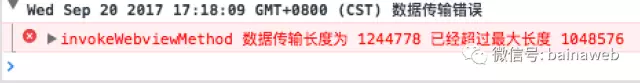 这么多数据直接扔到小程序模板里面去遍历(wx:for),开发者工具的日志里面就直接报错了:invokeWebviewMethod 数据传输长度为 1233778 已经超过最大长度 1048576