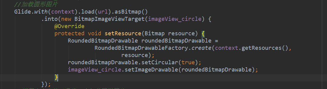 上图就是Glide 自带圆形图片使用方法~ 我们可以通过自定义Transformation 可以改变圆角大小,来实现不同的圆形图片效果~ 然后把它封装成公共类 便于使用.