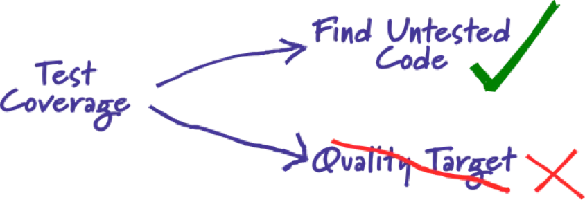 他认为:把测试覆盖作为质量目标没有任何意义,我们应该把它作为一种发现未被测试覆盖的代码的手段。