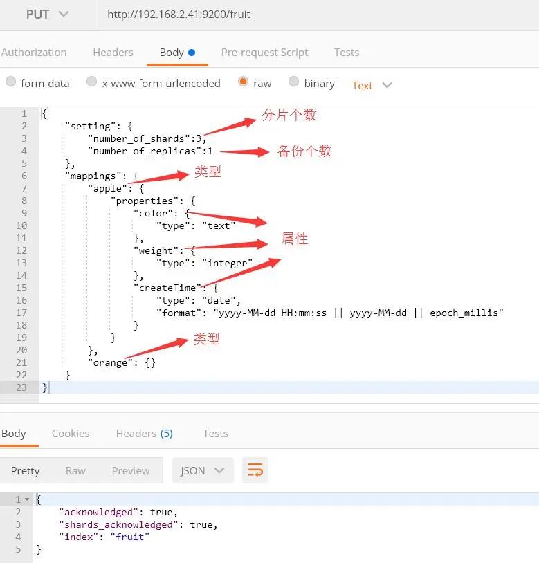 [PUT] http://192.168.2.41:9200/book返回结果: