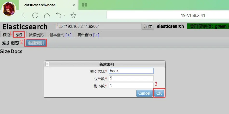 http://<ip>:<port>/<索引>/<类型>/<文档id>3.1 创建/删除索引