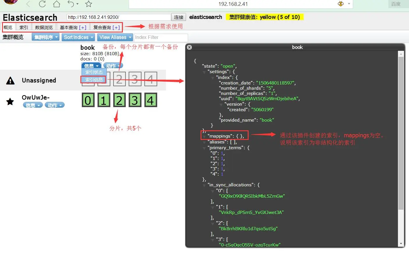 访问 http://192.168.2.41:9200 查看内容显示效果不友好,因此,我们需要安装一个名为 elasticsearch-head 的插件,让内容显示效果比较舒适。