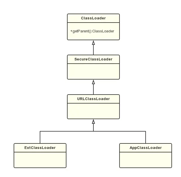 - SecureClassLoader继承了抽象类ClassLoader,但SecureClassLoader并不是ClassLoader的实现类,而是拓展了ClassLoader类加入了权限方面的功能,加强了ClassLoader的安全性。